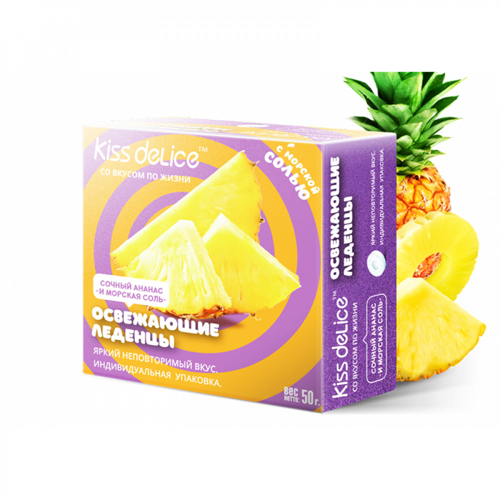 Аромат/вкусСочный ананас и и морская соль Без сахараДа БрендKiss Delice